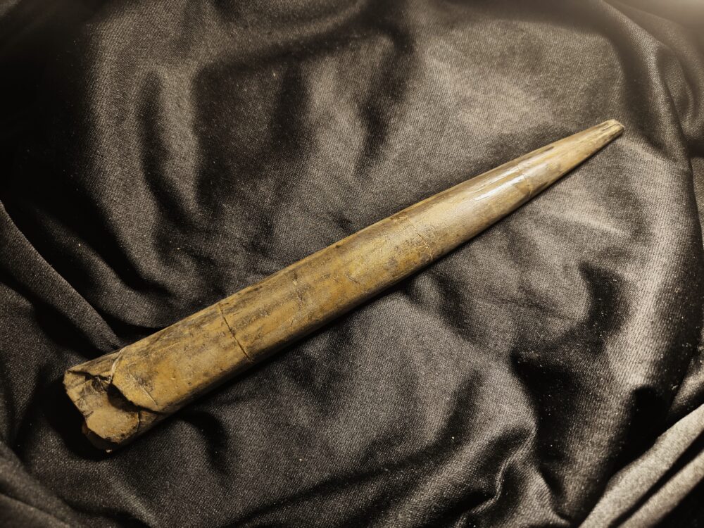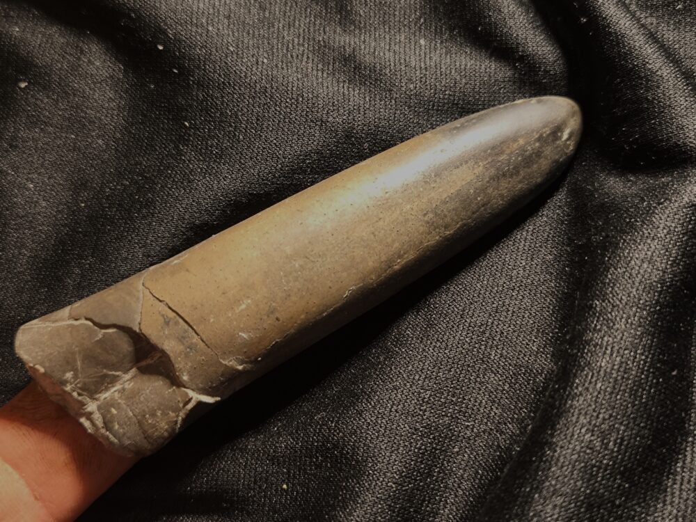 Schönes Exemplar des Belemniten Youngibelus ohmdensis.